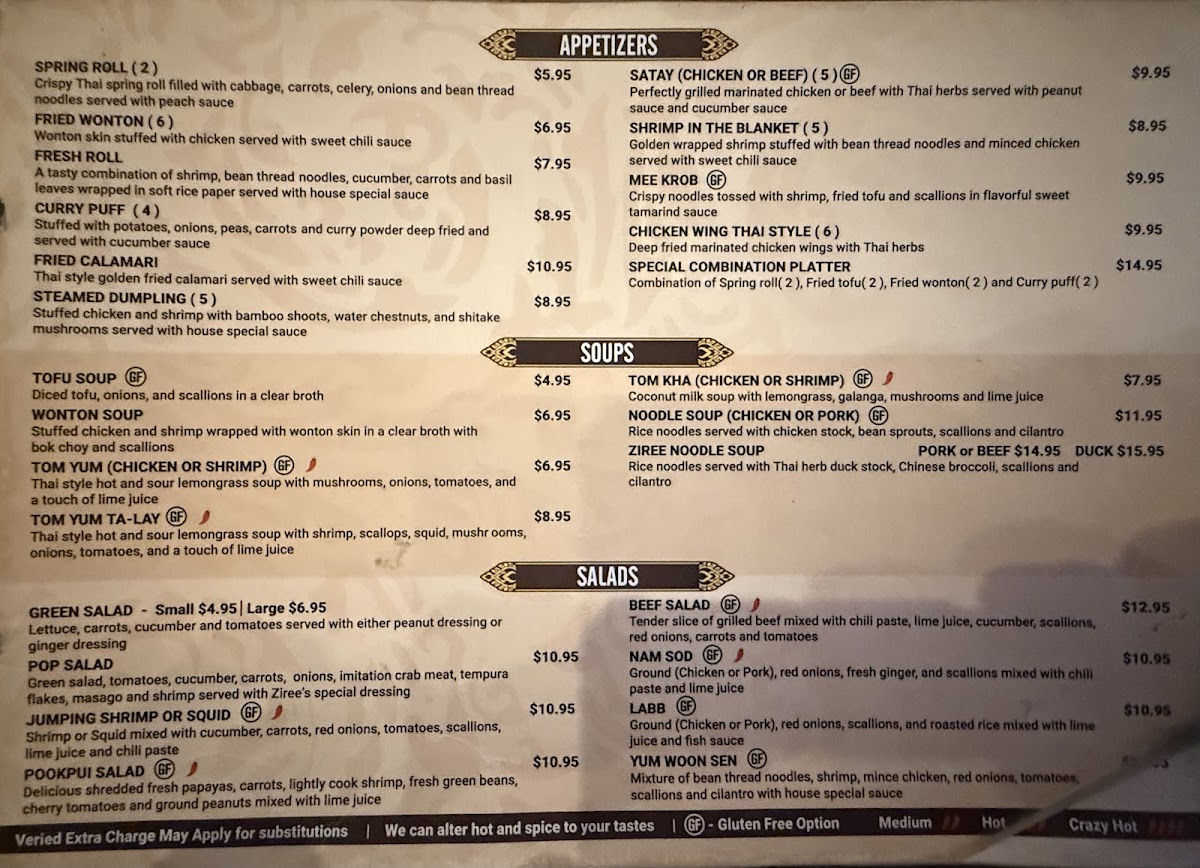 If you're craving a delicious blend of bold flavors, the Ziree Thai & Sushi Menu is a must-try. Located at 401 W Atlantic Ave in Delray Beach, this spot is all about combining traditional Thai dishes with fresh sushi in a way that feels both exciting and comforting. Whether you’re in the mood for a spicy green curry, a flavorful pad Thai, or the finest sushi rolls, there’s something here to satisfy every palate. The menu features a variety of expertly crafted options, from savory appetizers to flavorful entrees and mouthwatering sushi creations. The balance of fresh ingredients and aromatic spices makes every bite at Ziree Thai & Sushi feel like an adventure. Perfect for a casual lunch or a night out with friends, this menu brings together the best of both worlds-Thai and sushi-into one unforgettable dining experience.